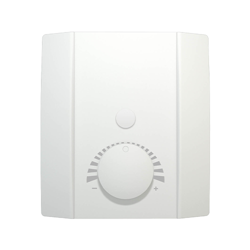 Les éléments de commande possibles sont des potentiomètres, une LED avec sélection de couleur et des boutons pour la valeur de consigne, la détection de présence, le contrôle d'autres appareils et le retour d'information. La bornier de raccordement dans la partie inférieure du boîtier permet le pré-câblage. Les valeurs de seuil peuvent être configurés individuellement via Thermokon NOVOSapp.